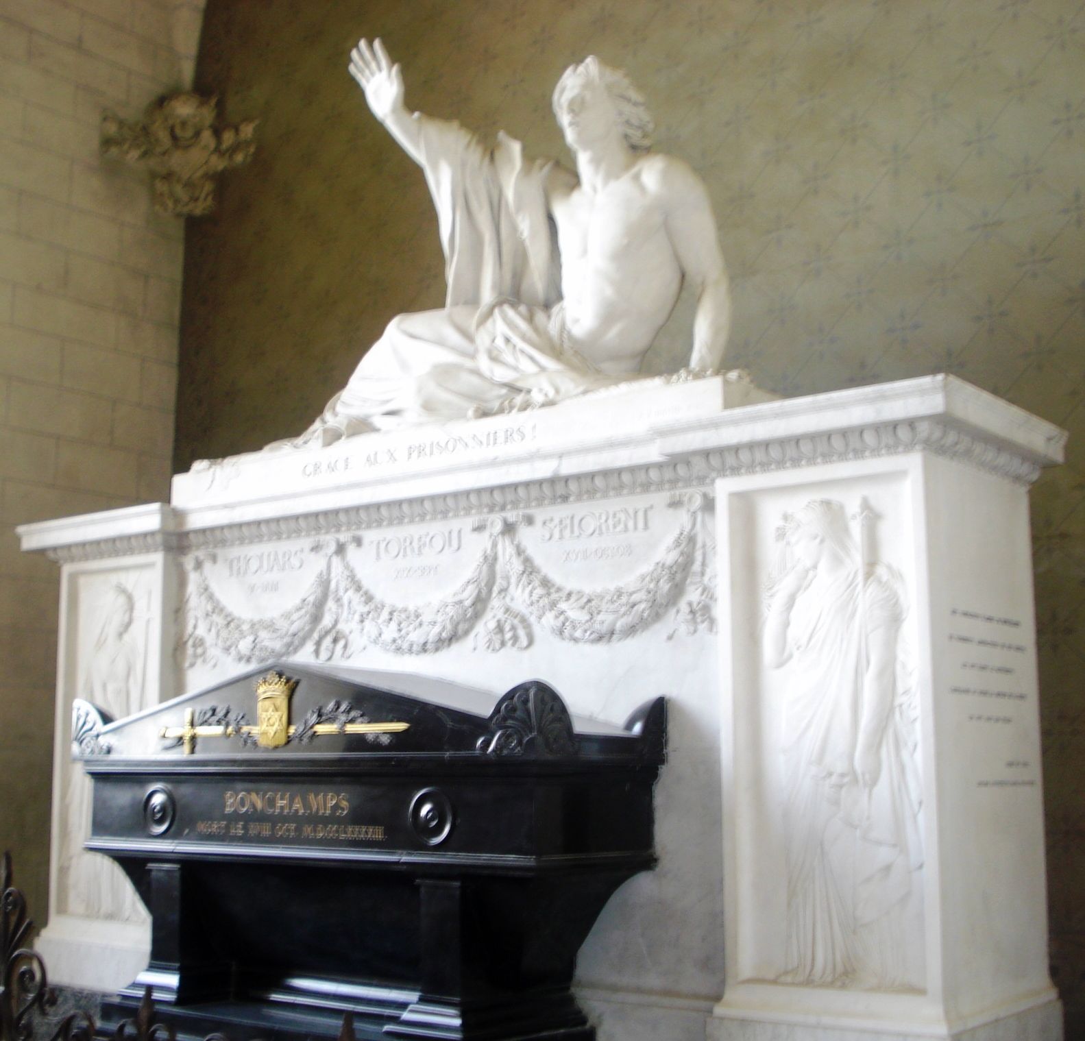 Il existe cependant des situations où la grandeur d’âme l’emporte sur l’esprit de haine ou de gain. Il en est ainsi du geste du généralissime des armées vendéennes à saint-Florent-le-Vieil, passé sous silence dans les livres d’histoire de nos enfants, car ce geste déroge à tous les principes vengeurs qui constituent la morale quotidienne de notre prétendue civilisation. (Ci-dessus, Le tombeau de Bonchamps, généralissime de l’armée catholique et royale, à Saint-Florent-le-Vieil).