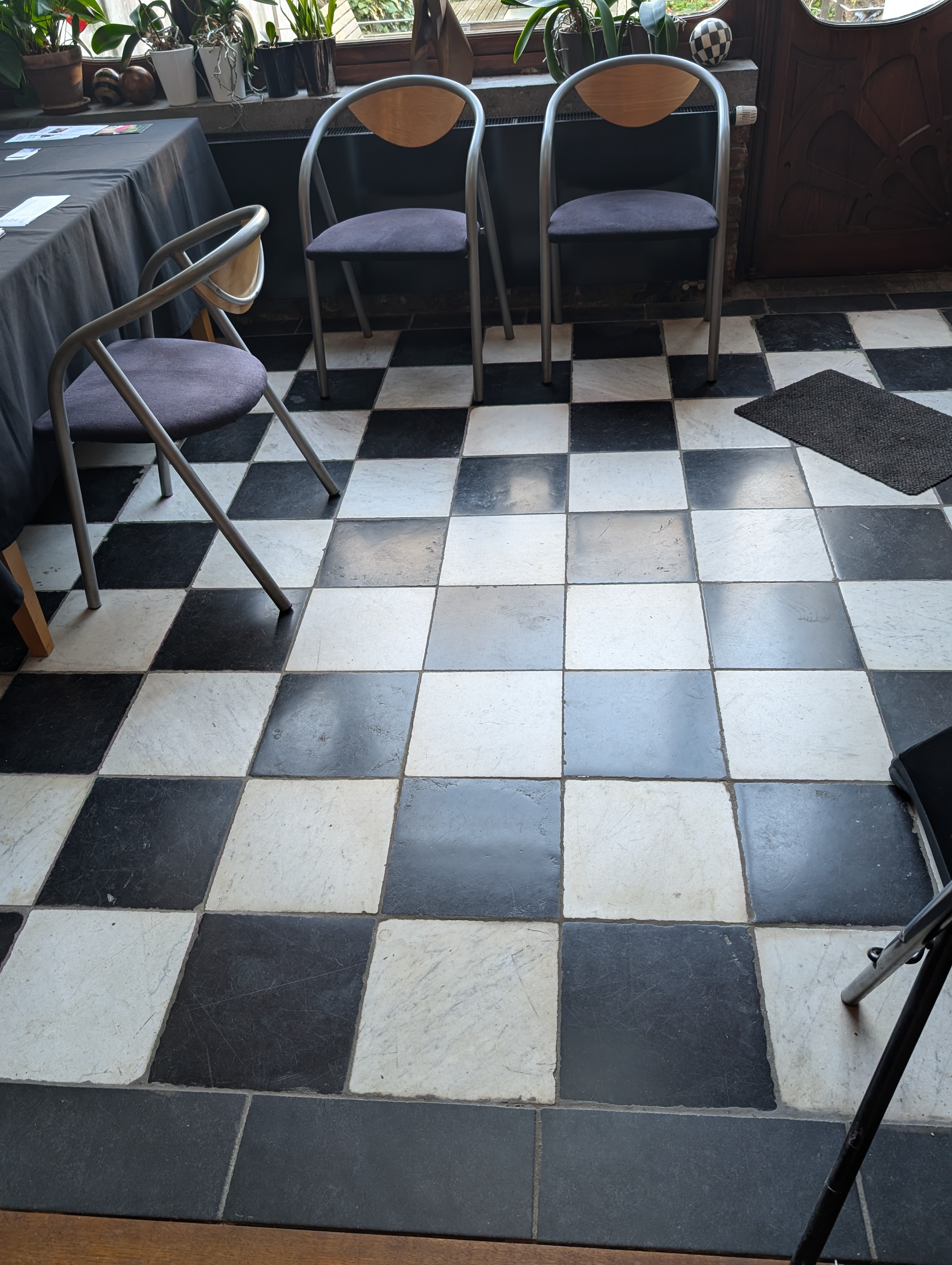 Une table dans un café parisien ou ailleurs, peut devenir un échiquier en univers du Nouveau traité du jeu d’échecs substituant un tablier de cent cases à l’échiquier actuel de 64 cases.