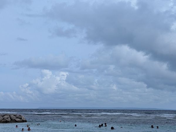 Au lointain, vu de cette même plage de Sainte-Anne, Marie- Galante mon Amour, ultime refuge de la sincérité caribéenne.