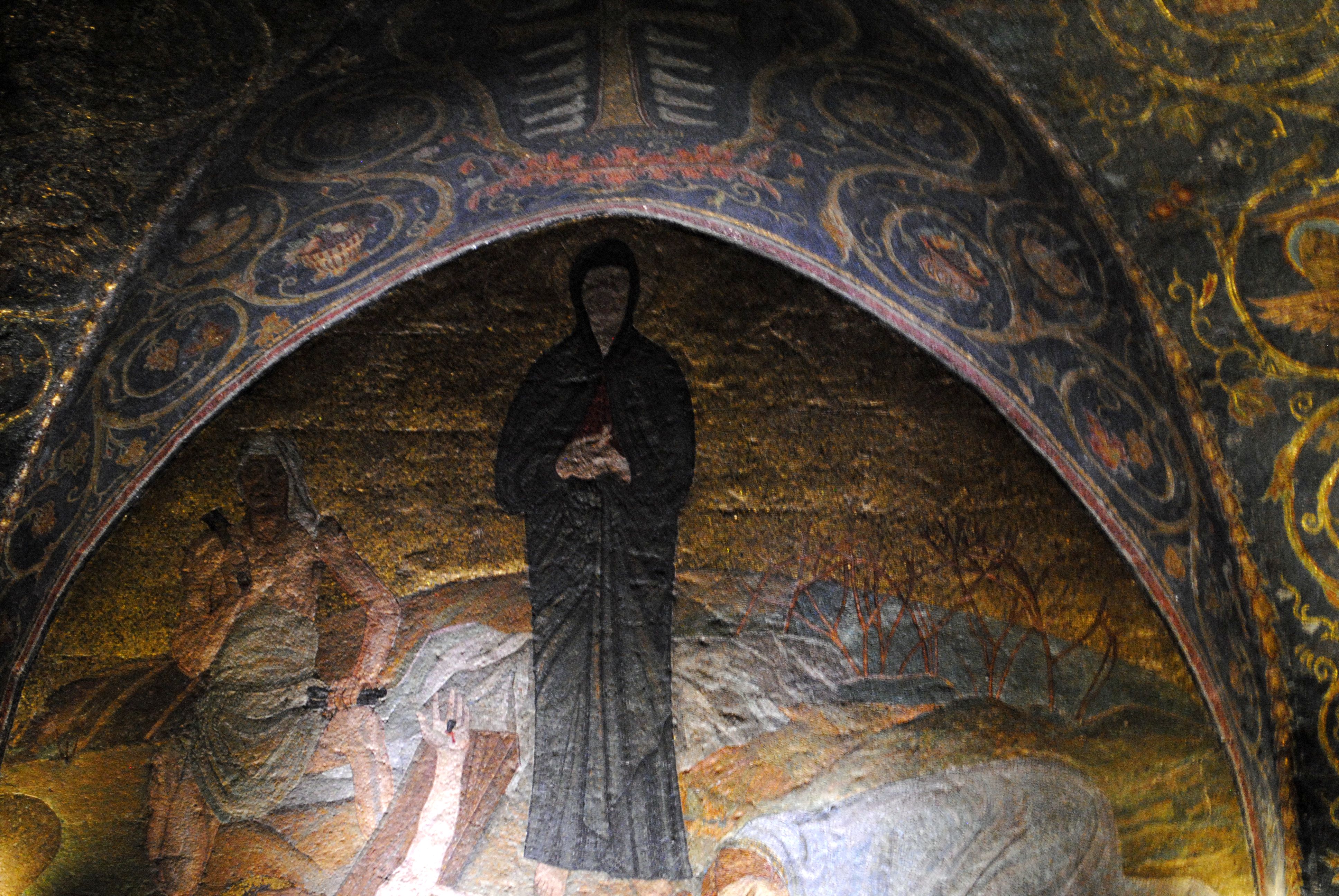 En qutitant l’autel du Calvaire, nos pas nous conduisent sous le calvaire à l’oratoire de Sainte Marie l’Egyptienne dont le récit de sa vie au désert est conté dans la Légende dorée de Jacques de Voragine. Non loin se trouve aussi la chapelle de Saint Grégoire l’Illuminateur qui convertit toute l’Arménie, avant même la conversion de Constantin, à la bataille du Pont Milvius en 312.