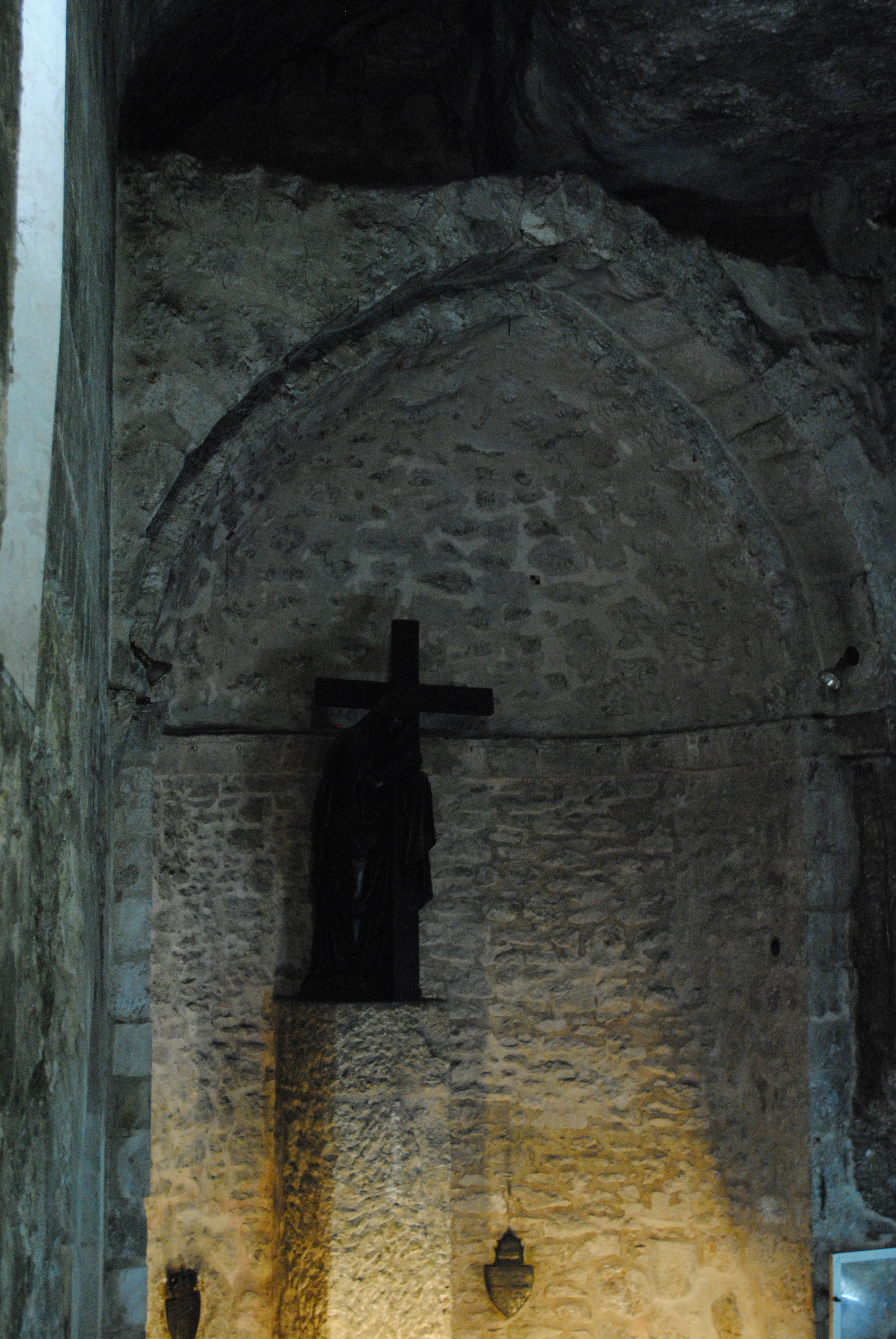 Partout la foi se réfugie, ici dans une crypte, là dans une grotte, on monte et on descend d’une chapelle l’autre, les autels attendent de recevoir les témoignages de foi, se contentant parfois ou souvent, peu importe, de la simple visite d’un spectateur égaré dans la pénombre des murs, à la recherche de la lumière qui traverse les rares fenêtres creusées dans cette caverne sculptée de larmes immobiles de pierres.