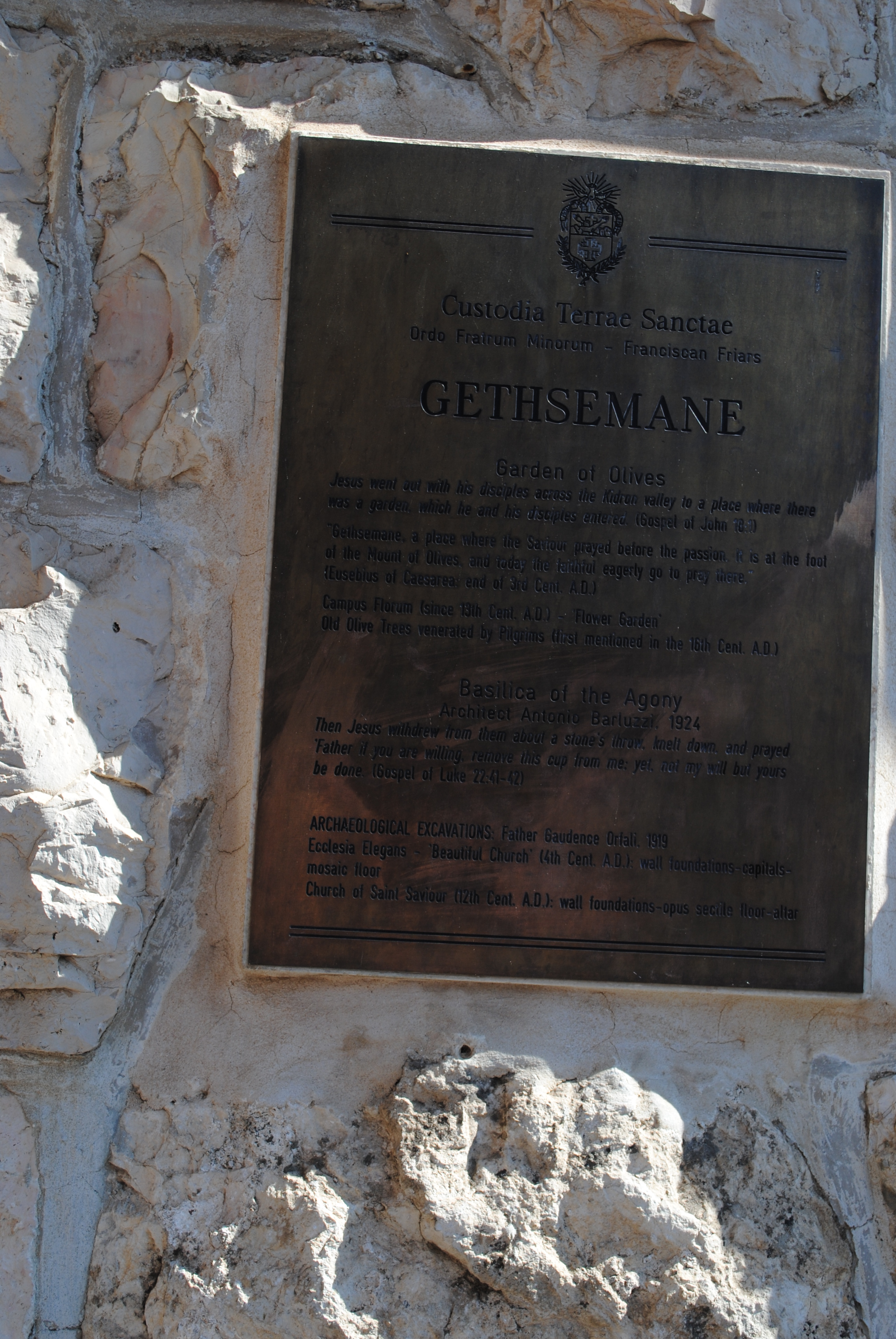 La mention des nationalités des donateurs qui permirent aux Franciscains de financer la construction de l’église figure dans l’église de Toutes-les-nations dont le nom a justement été donné pour souligner le caractère universel du financement de cette église, les dons provenant du monde entier. On lui donne aussi le nom de basilique de l’Agonie :