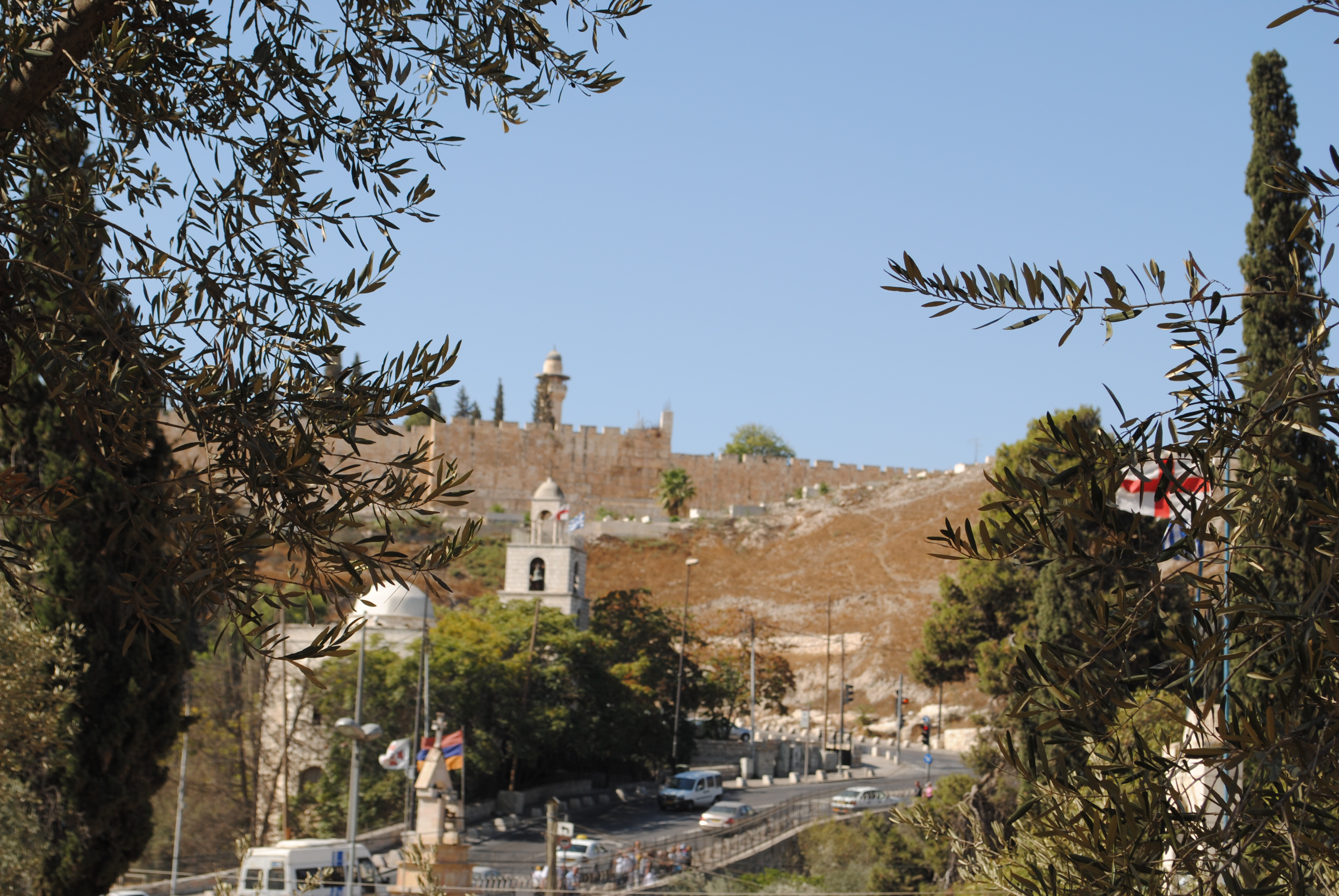 De là, on aperçoit fort bien les remparts de la vieille ville et la vallée du Cédron traversée aujourd’hui par la Jéricho road, un des principaux axes de la ville de Jérusalem.