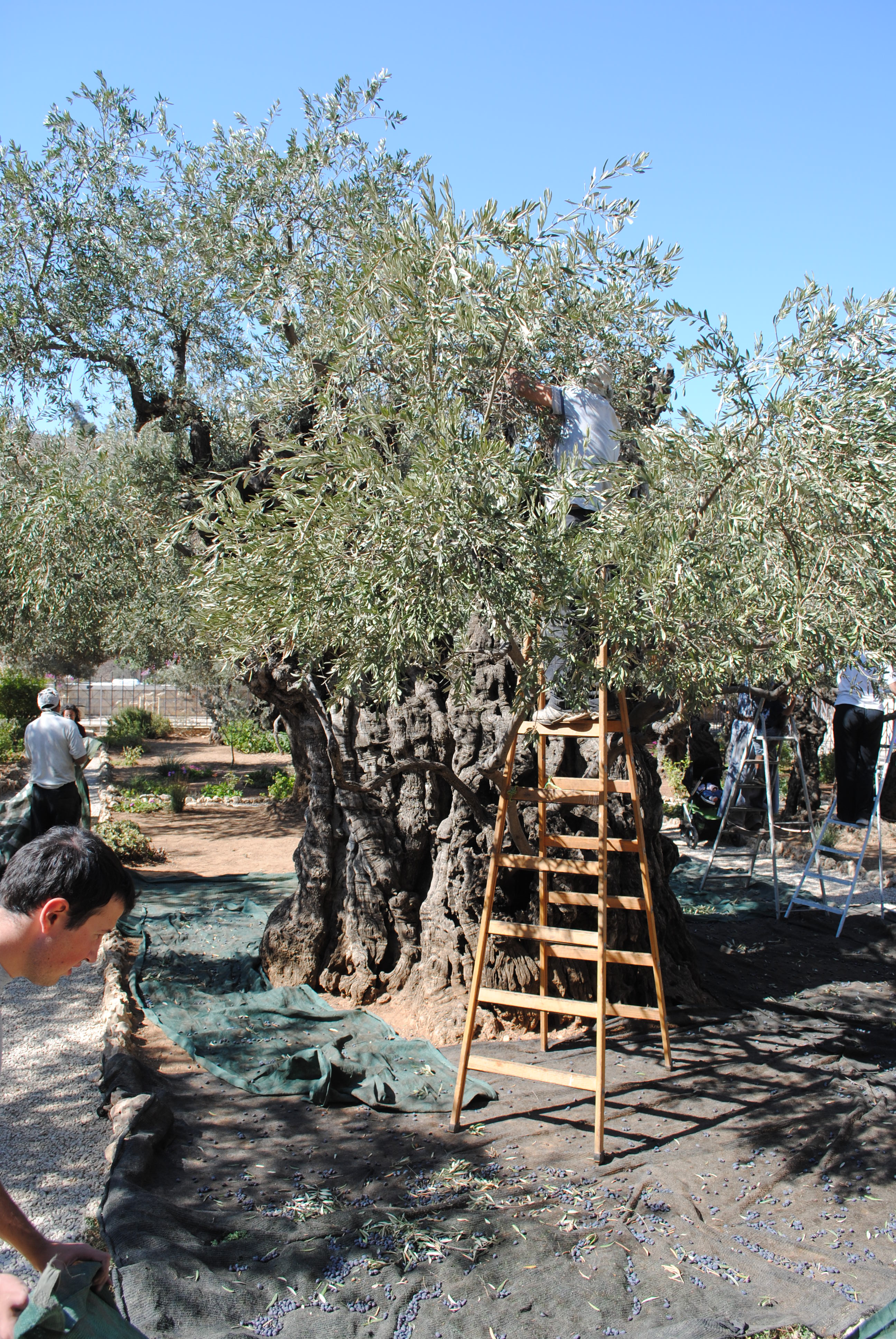 Quant à l’entretien de l’oliveraie, ce sont des bénévoles de passage qui proposent de venir en aide aux Franciscains pour tailler les arbres et récolter les olives. Presser les olives est justement à l’origine du nom du jardin, Gesthsémani en araméen signifiant Pressoir. Et chaque Jeudi saint une procession est organisée de la basilique, lieu de l’arrestation du Christ, à Saint Pierre en Gallicante, prison où le Christ fut détenu avant d’être présenté au grand prêtre Caïphe puis Ponce Pilate.