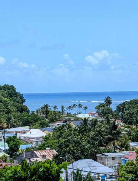 Ci-gît, la barrière de corail vue des hauteurs du port de Sainte-Rose, qui illustre chaque jour que Dieu fait, que rien n’ est éternel sur terre et mer en dehors du ciel qui les relie